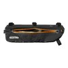 Rahmentasche mit wasserdichtem TIZIP Reißverschluss (überarbeitete Version) auf der rechten Seite; ideal für die Kombination mit Trinkflaschenhalter im Rahmendreieck; 5 austauschbare und individuell positionierbare Klettbänder zur Befestigung am Oberrohr, Sattel- und/oder Unterrohr; abriebfestes, PU-beschichtetes Nylongewebe; geeignet für Montage an Carbon-Rahmen.