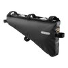 Rahmentasche in 2 Größen mit wasserdichtem TIZIP Reißverschluss (überarbeitete Version) auf der rechten Seite; 6 austauschbare und individuell positionierbare Klettbänder zur Befestigung an Oberrohr, Sattel- und/oder Unterrohr; Klettband im Tascheninneren verhindert Überwölbung der Tasche; abriebfestes, PU-beschichtetes Nylongewebe; geeignet für Montage an Carbon-Rahmen.